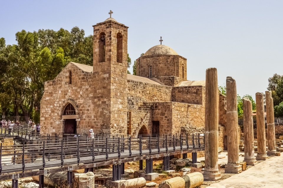Entlang der Küste führt Sie der Ausflug zu den bedeutendsten Altertümern Zyperns. Unterwegs halten Sie am sagenumwobenen Aphrodite-Felsen, wo die Göttin der Liebe und Schönheit dem Schaum des Meeres entstieg. Dann stoppen Sie in Geroskipou und besichtigen die aus dem 11. Jahr-hundert stammende fünfkuppelige byzantinische Kirche Agia Paraskevi mit ihren wertvollen Fresken. In Kato Paphos sehen Sie die Chrysopo-litissa-Basilika. (F, A)